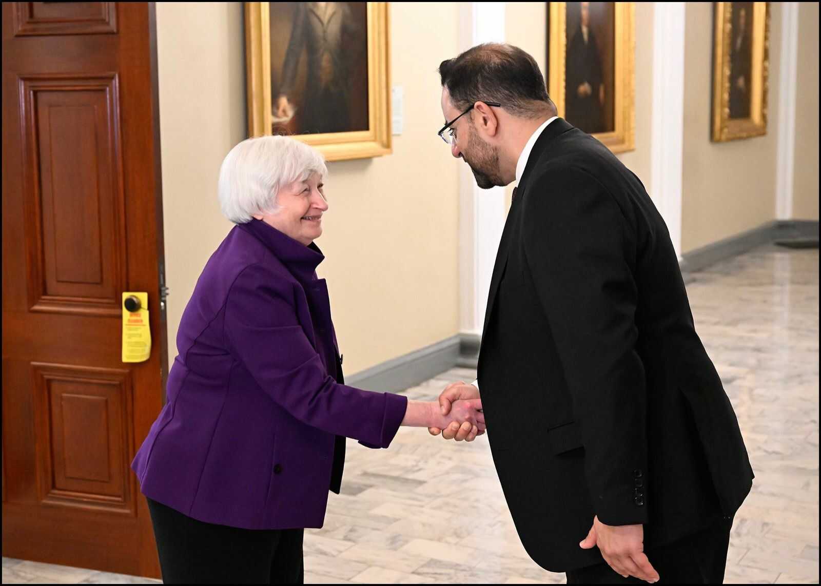 22 الاعلامي - اجتمع وفد من الحكومة الاردنية برئاسة وزير المالية الدكتور محمد العسعس مع وزيرة الخزانة الامريكية جانت يلن اليوم الثلاثاء في واشنطن. وضم الوفد وزيرة التخطيط والتعاون الدولي زينة طوقان ومحافظ البنك المركزي الأردني د. عادل شركس وامين عام وزارة المالية د. عبدالحكيم الشبلي.