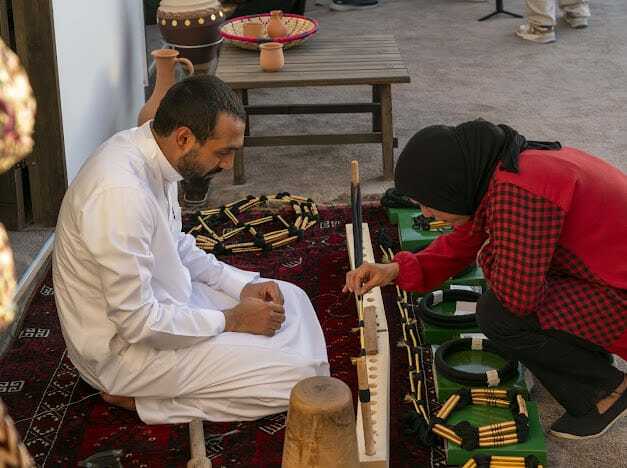 22 الاعلامي - عمّان - لفت ركن صناعة العُقُل بجناح المملكة العربية السعودية المشارك في مهرجان جرش للثقافة والفنون 2023 في المملكة الأردنية الهاشمية، زوار المهرجان بدورته 37، نسبةً إلى الطريقة اليدوية القديمة التي يصنع بها العُقُل التقليدية، والعِقال "الزري" بالطريقة الخاصة والمطعّم بخيوط الذهب.