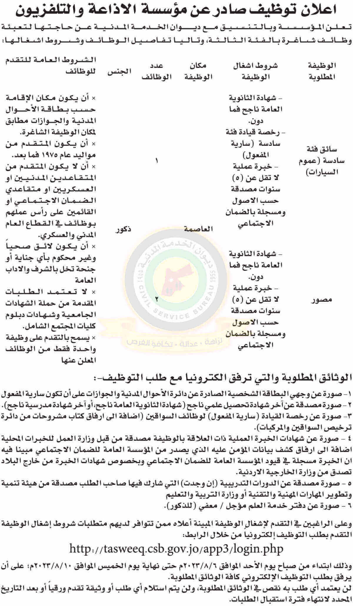 إعلان توظيف صادر عن مؤسسة الإذاعة والتلفزيون