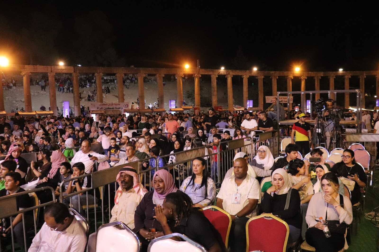 وفي لحظة تجلٍّ، أسمع واصف بتأريخه النابض بالحياة أعمدة جرش، مُشهِدًا إيّاها على حياة النمري وما قدمه للفن الأردني، متّخذًا في مسعاه ذاك مبدأ "فما جزاء الوفاء إلا الوفاء"، لافتًا أنظار المستمعين الذي ظلت الدهشة مرسومة على محيّاه، دون أن تفارق البسمة الوجوه، بسمة ارتسمت على جمهورٍ امتدّ ليشمل مواطنين من شتّى الخلفيّات والمجالات، وقفوا جنبًا إلى رجال الأمن العام والباعة ومندوبي وسائل الاعلام، ليتابع كلّ واحد منهم العرض الذي شدّهم بجميل الأداء وعمق السرد.
