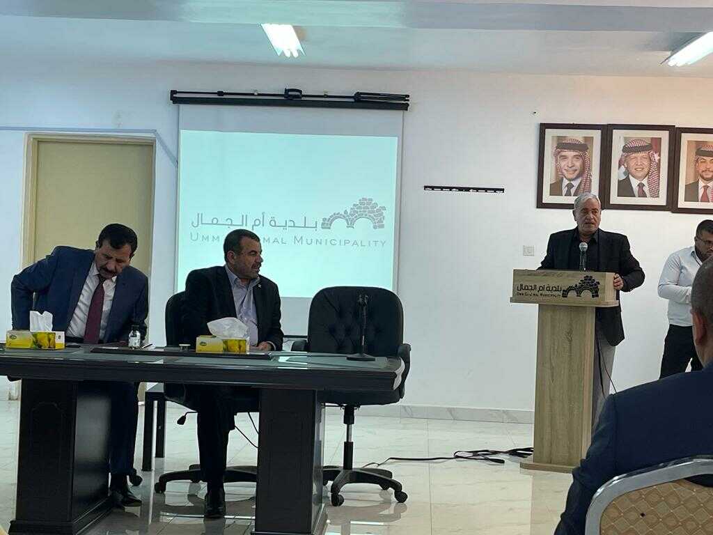 وقد بدأت اللقاءات في بلدية ام الجمال بلقاء رئيس البلدية عضو الحزب حسن الرحيبة المساعيد حيث دار حوار حول تطوير العمل البلدي والتحديات والصعوبات التي تواجه البلديات ودور الحزب في دعم البلديات كذلك تم الحديث عن دعم بلدية ام الجمال بالتصويت على دخول مدينة ام الجمال الاثريه الى قائمة التراث العالمي في اليونسكو