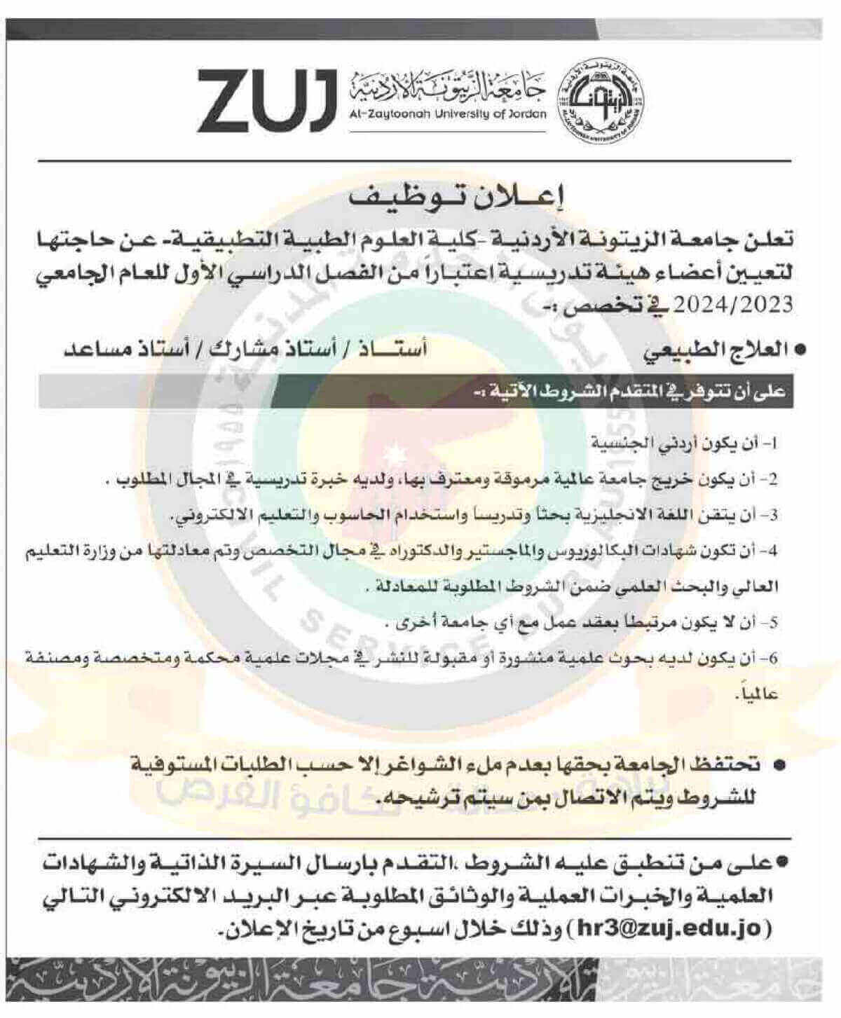 اعلان وظائف شاغرة صادر عن جامعة الزيتونة