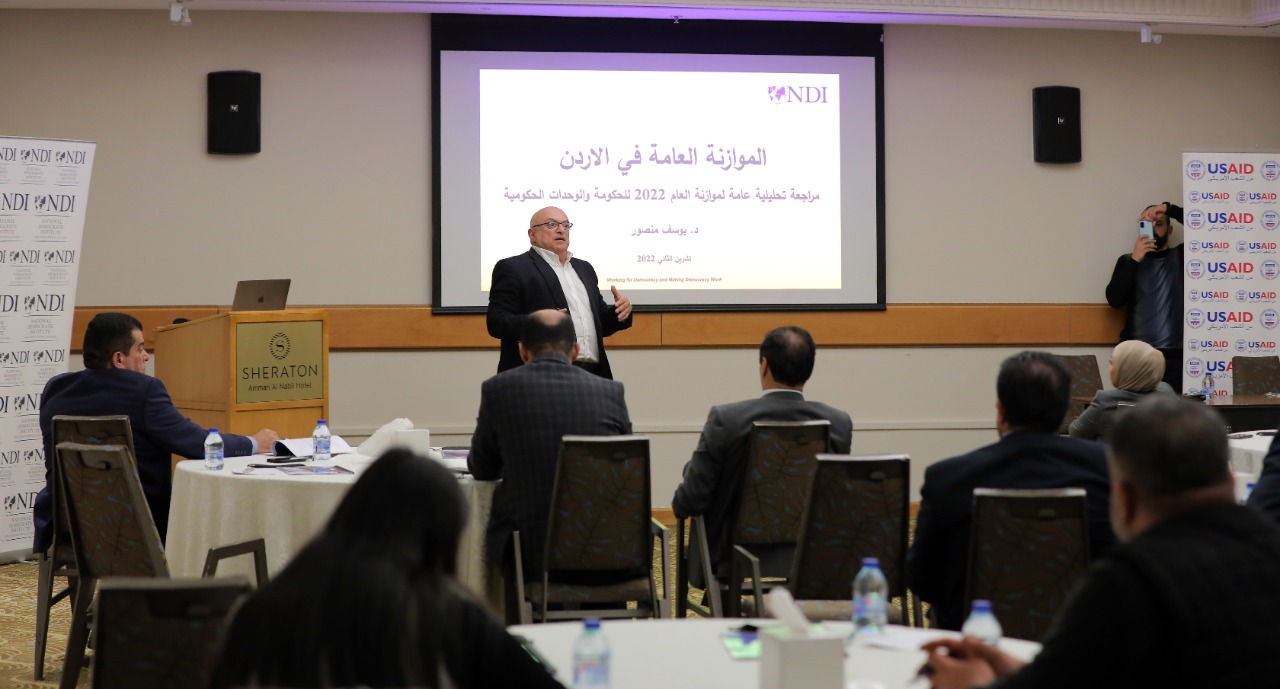 خبير المعهد الديمقراطي الوطني الدكتور يوسف منصور، بدوره استعرض الدراسة التي قام بإعدادها المعهد وركز على الوضع الاقتصادي الراهن والتحديات، وعجز الموازنة وطرق علاجها، ودور البرلمان في إقرار الموازنة العامة، وأطرها الدستورية والقانونية.