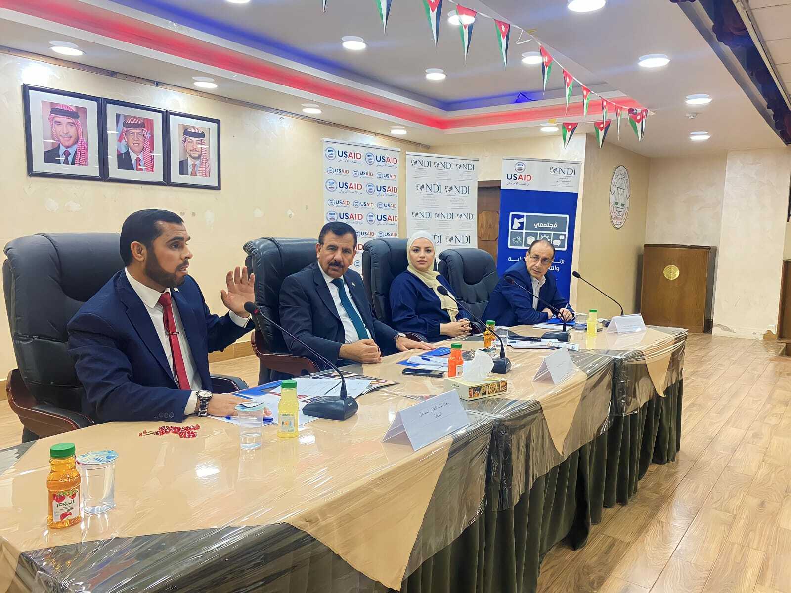 جاء ذلك خلال جلسة حوارية نظمها المعهد الديمقراطي الوطني مع المشاركين ببرنامج "مجتمعي" أحد برامج المعهد والجلسة بعنوان: "الانتخابات القادمة ومخرجات اللجنة الملكية" شارك فيها النائب الدكتور اسماعيل المشاقبة، والنائب الدكتور عمر الزيود.