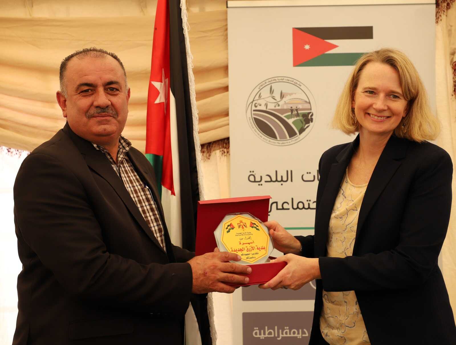 لينا عبدالله، والمستشار الإعلامي والناطق الإعلامي بوزارة الإدارة المحلية محمد الملكاوي، وممثلة السفير الكندي في الأردن وأعضاء مجلس بلدية الأزرق الجديدة وممثلين عن المجتمع المحلي في البلدية.