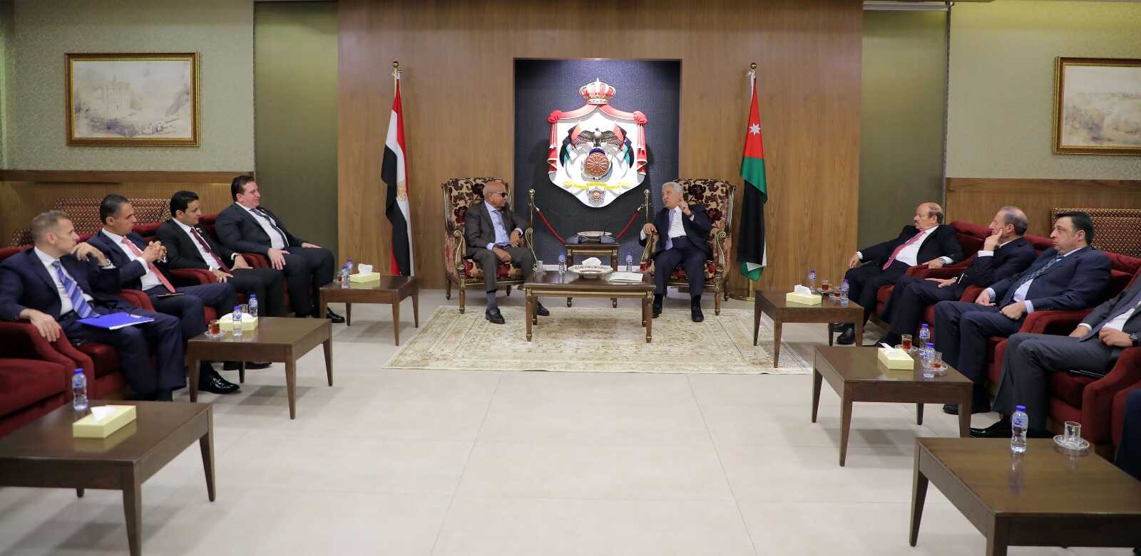 كما وثمن والوفد المرافق ، دور الأردن باستضافة أكثر من مليون عامل مصري على الأراضي الأردنية ، داعيًين ا إلى اقامة المزيد من الاستثمارات المشتركة بين البلدين الشقيقين وتفعيل التعاون الثنائي بمحتلف المجالات .