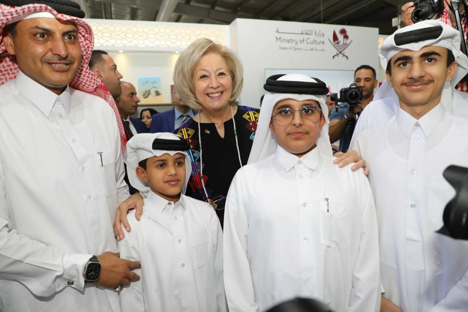 وبعد الافتتاح، جالت وزيرة الثقافة برفقة السفير القطري على أجنحة المؤسسات الثقافية القطرية المشتركة، وجناح دولة قطر ضيف شرف المعرض لهذا العام حيث استمعت من المشرف على الجناح، ومدير معرض الدوحة الدولي للكتاب جاسم البوعينين الى طبيعة المشاركة القطرية، وما يضمه الجناح من إصدارات وزارة الثقافة القطرية، ولوحات فنية لفنانين قطريين.