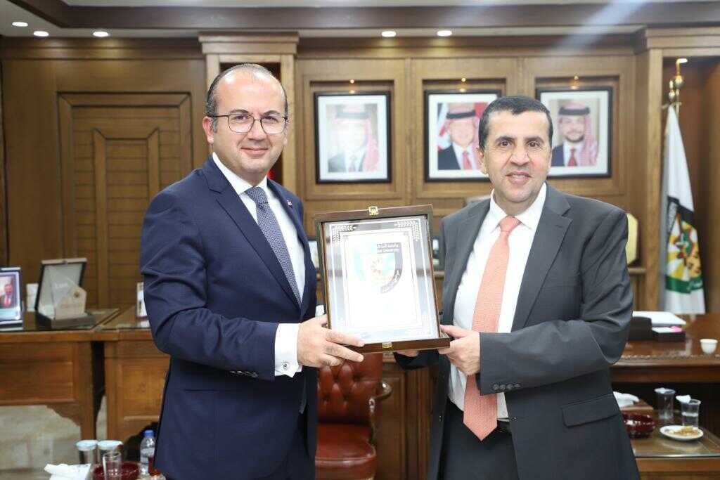 الدكتور العجلوني رحب بالسفير التركي والوفد المرافق ،مؤكدا على عمق العلاقات التاريخية والصداقة التي تربط الاردن بالجمهورية التركية وان تركيا هي امتداد للعالم العربي والعالم والإسلامي ، مشددا على اهتمام الجامعة بتعزيز اواصر التعاون مع الجامعات التركية والمؤسسات العلمية والبحثية في مختلف المجالات الأكاديمية والبحثية وتبادل الطلبة ، منوها الى ان الجامعة لديها اتفاقيات تعاون مع عدد من الجامعات التركية ،ومعبرا عن استعداد الجامعة للتعاون في مجال تدريس اللغة العربية التطبيقية للطلبة الاتراك وإقامة الدورات التدريبية وإعداد وتصميم برنامج خاص بهم يناسب امكانياتهم لتعليمهم اللغة العربية وفي مختلف كلياتها المنتشرة في المملكة بالإضافة الى امكانية طرح مساق للغة التركية كمتطلب اختياري لطلبة الجامعة.
