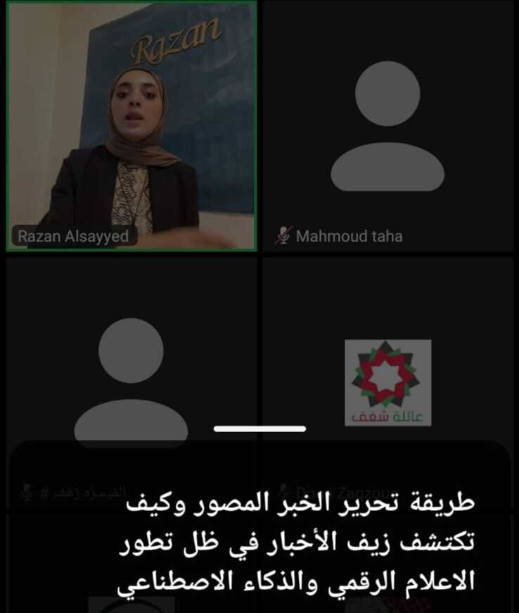 22 الاعلامي - عقد يوم أمس فريق عزيز أنت يا وطني للعمل التطوعي الموافق 2023/9/23م ورشة عمل مع الصحفية رزان السيد وكانت تحت عنوان " طريقة تحرير الخبر المصور وكيف تكتشف زيف الأخبار في ظل التطور الرقمي والذكاء الاصطناعي".
