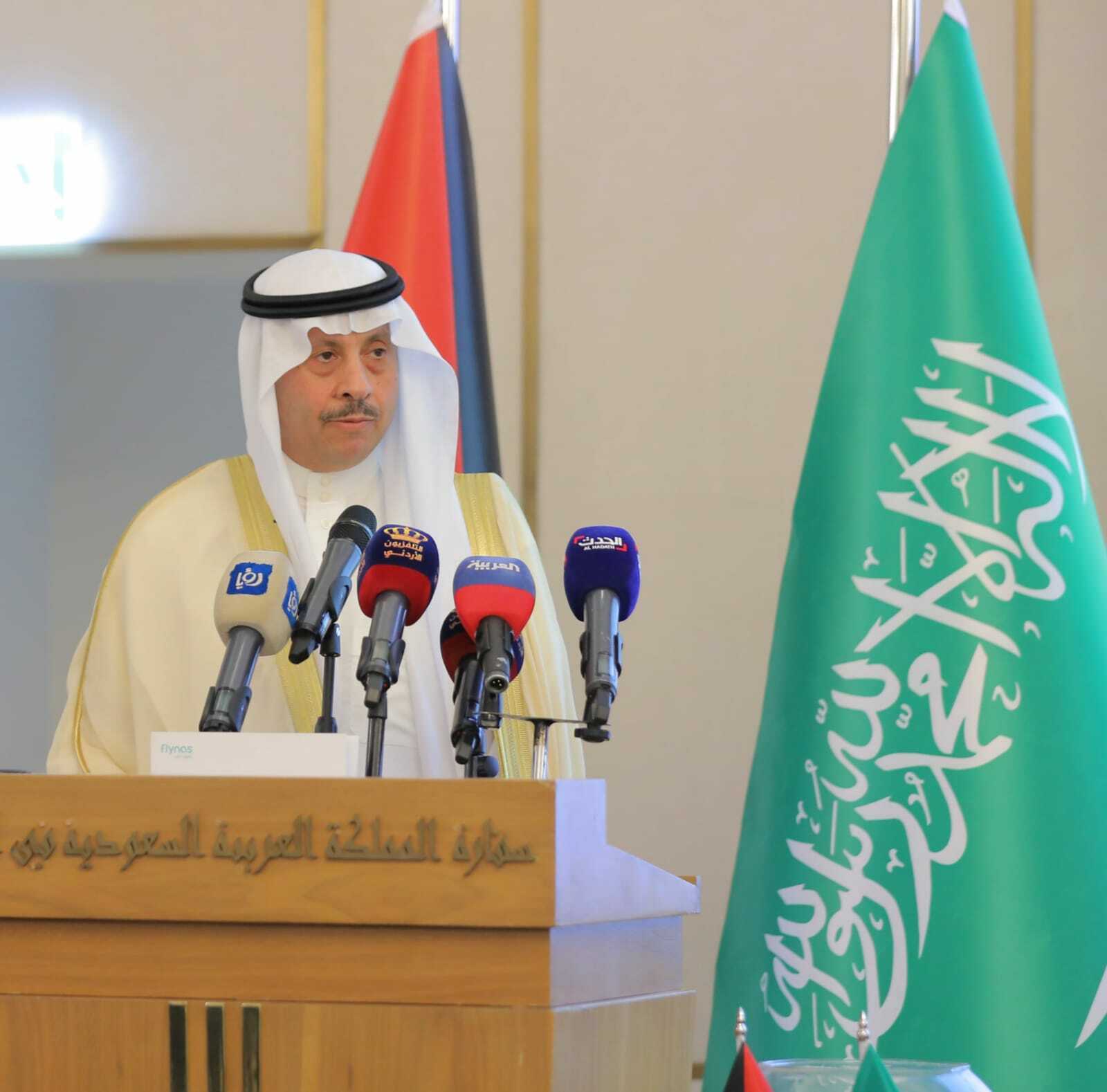 وقال الصفدي في كلمته، إن ما يسر السعودية يسرنا، وعلاقات البلدين متجذرة ومتينة وتاريخية، تصب في صالح الشعبين الشقيقين ، بقيادة جلالة الملك عبد الله الثاني حفظه الله، وأخيه خادم الحرمين الشريفين الملك سلمان بن عبد العزيز حفظه الله.