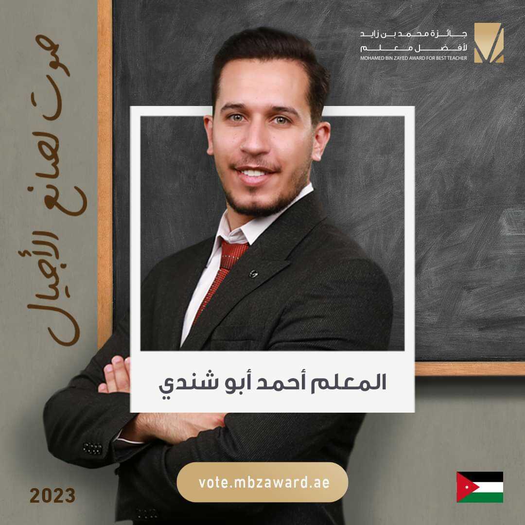 22 الاعلامي - عمان - تدعو وزارة التربية والتعليم الى التصويت للمعلمين الأردنيين المتأهلين للمرحلة النهائية لجائـــزة محمد بن زايـــد لأفضـل معلــــم وهم المعلمة جواهر الغويري والمعلم احمد ابو شندي من خلال الرابط https://vote.mbzaward.ae