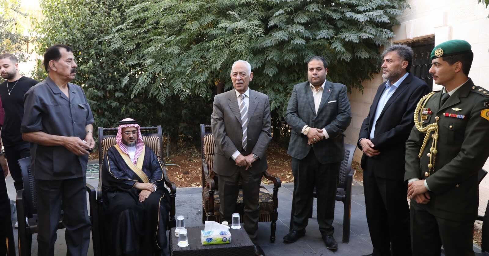 22 الاعلامي - عمان- مندوبا عن جلالة الملك عبدالله الثاني ابن الحسين المعظم وسمو ولي العهد المعظم قدم معالي رئيس الديوان الملكي الهاشمي السيد يوسف حسن العيسوي واجب العزاء اليوم الجمعة الموافق 29-9-2023 بالمرحوم الدكتور كمال احمد محمد القضاة (ابو احمد) بمحافظة عجلون ، كما قدم معالية التعازي بوفاة المرحوم محمد علي النوباني(ابو وائل ) بمحافظة العاصمة، والمرحوم الصحفي نضال سلامة(ابو أحمد ) ، والمرحوم زيد فريز(ابو اسامة ) والمرحوم نعمان ابراهيم الزيادات(ابو أبراهيم ) .