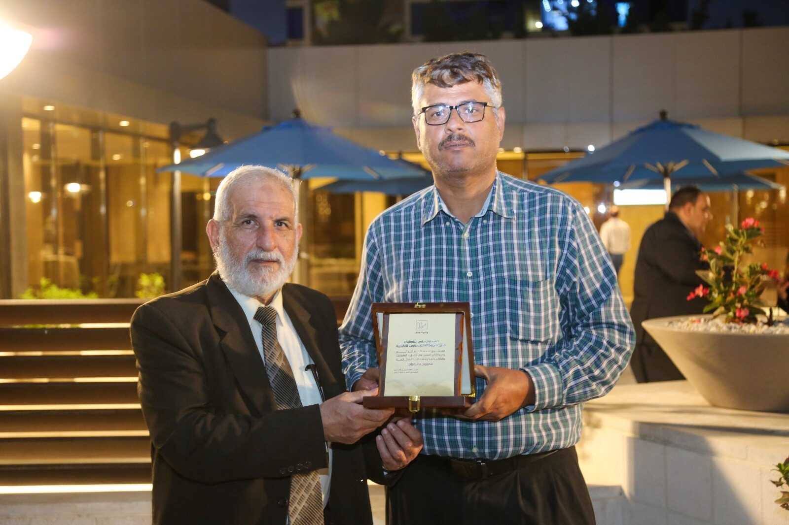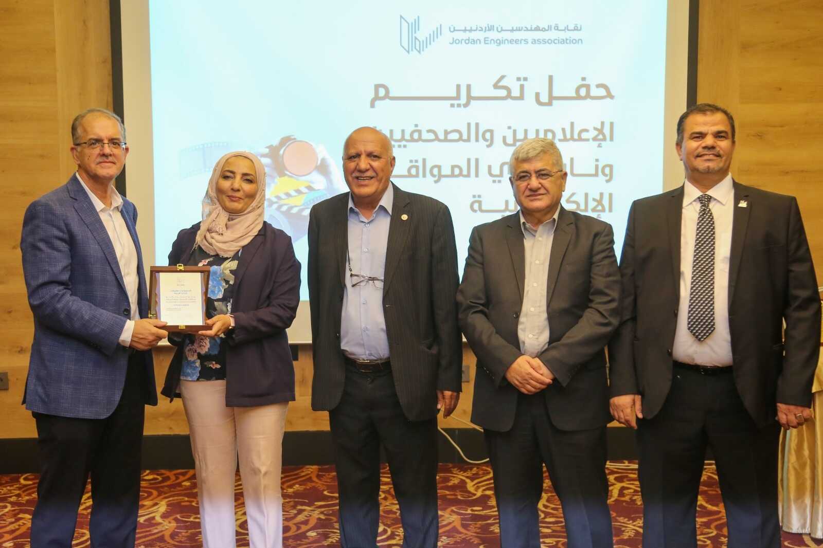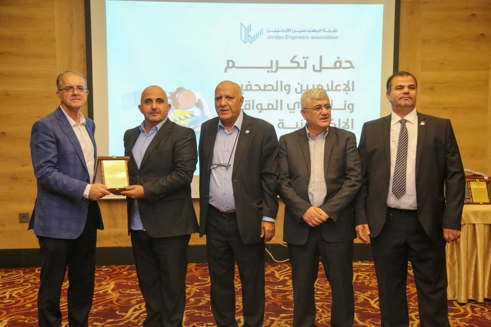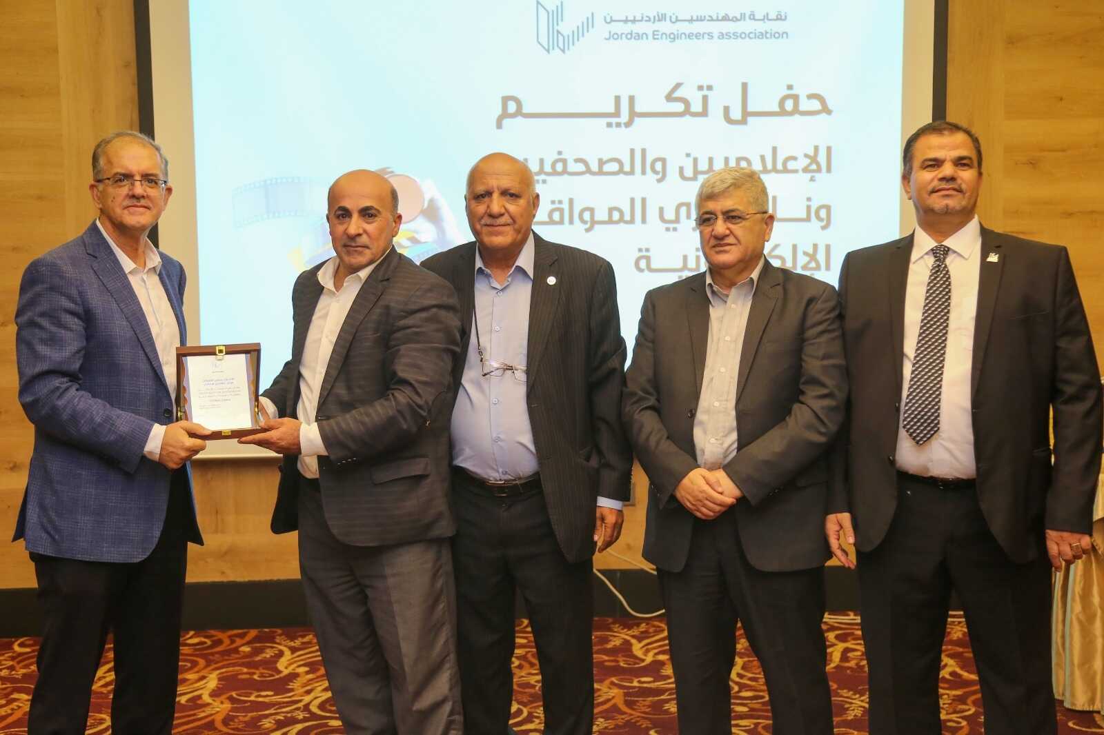 22 الاعلامي - كرمت نقابة المهندسين الأردنيين، الاعلاميين والصحفيين وناشري المواقع الاعلامية الالكترونية الداعمين لكافة أنشطة وفعاليات وحملات النقابة المختلفة التي تقيمها بشكل مستمر وعلى رأسها حملة فزعة اهل لترميم منازل الاسر العفيفة في الأردن، خدمة لمنتسبيها وللوطن بشكل عام، وذلك بحضور نائب نقيب المهندسين المهندس فوزي مسعد وعضو مجلس النقابة رئيس حلمة فزعة اهل المهندس معتز الشوارب، وامين عام النقابة المهندس علي ناصر ونائب رئيس الحملة المهندس عبدالناصر الكلباني، وممثلين عن وسائل الاعلام المختلفة.