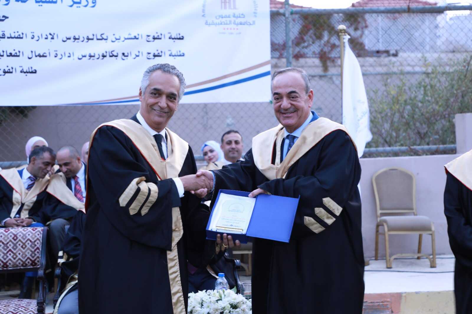 حيث ألقى معالي وزير السياحة والآثار، راعي الاحتفال، كلمة توجيهية للطلبة حول أهمية العمل في القطاع السياحي في الأردن ودور كلية عمون الجامعية التطبيقية في تطوير مهارات الطلبة ونجاحها في تدريبهم وتوظيفهم.