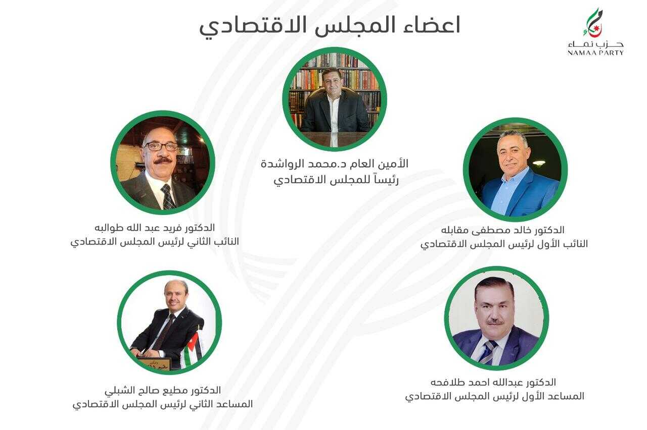 وقد تم تشكيل المجلس الاقتصادي برئاسة الامين العام للحزب الخبير الاقتصادي الدكتور محمد الرواشده وعضوية التالية أسماؤهم: