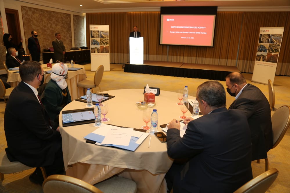 وقال النجار ان الوزارة/سلطة المياه تسعى لمواكبة المستجدات وتطوير القدرات لقطاع المياه بإعتباره أحد مقومات النجاح ، لافتًا إلى قيام الوزارة /سلطة المياه بالتعاون مع الوكالة الامريكية للتنمية الدولية بتنفيذ ورشة متخصثة لعدد من مهندسي وزارة المياه والري وسلطة المياه وسلطة وادي الاردن وشركات المياه ( مياهنا ، العقبة ، اليرموك ) حول عقود التصميم والتنفيذ والتشغيل