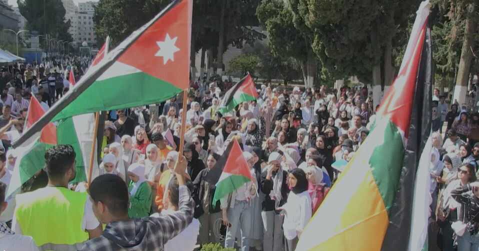 22 الاعلامي - نفذ مئات من طلبة الجامعة الأردنية وقفة احتجاجية بجرائم الاحتلال الإسرائيلي في قطاع غزة والأراضي الفلسطينية.