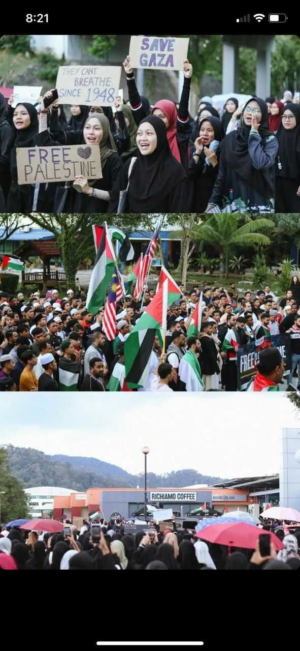 22 الاعلامي - آلاء سلهب - نظم طلاب جامعة اوتارا الماليزية والعديد من الجامعات الأخرى في ماليزيا العديد من المسيرات التضامنية مع اخوانهم واشقائهم المسلمين في غزة وتنديدًا ورفضًا لما يحدث في الأراضي الفلسطينة من انتهاكات وجرائم من قبل الاحتلال الصهيوني على المدنيين من الأطفال والنساء والشيوخ.