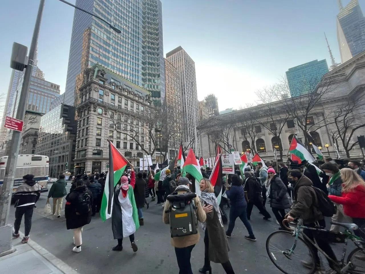 مسيرة مؤيدة للفلسطينيين تجوب شوارع مانهاتن بنيويورك