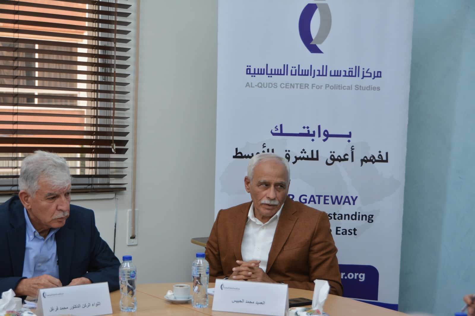 عمان، 28 أكتوبر 2023: نظّم مركز القدس للدراسات السياسية "جلسة عصف ذهني" شارك فيها عددٌ من الضباط الكبار المتقاعدين من القوات المسلحة الأردنية – الجيش العربي، تركزت على محورين اثنين: الأول؛ احتمالات قيام إسرائيل بشن حرب واسعة على المقاومة الفلسطينية في قطاع غزة، سيناريوهات هذه الحرب وأشكالها، حدودها ومدياتها، في انصب المحور الثاني على مناقشة احتمالات توسع الحرب على غزة إلى حرب إقليمية بدخول حزب الله وإيران إلى ساحة المواجهة العسكرية المباشرة...وشارك في الورشة كل من اللواء الركن محمود ارديسات واللواء الركن محمد فرغل واللواء الركن عبد السلام الحرازنة، واللواء الدكتور المهندس هشام خريسات، واللواء الركن الدكتور ياسين المواجدة، واللواء الدكتور صلاح القضاة والعميد الركن محمد الحبيس والعميد الدكتور راكز الزعارير، وقدّم للورشة وأدارها عريب الرنتاوي، مدير مركز القدس للدراسات السياسية.