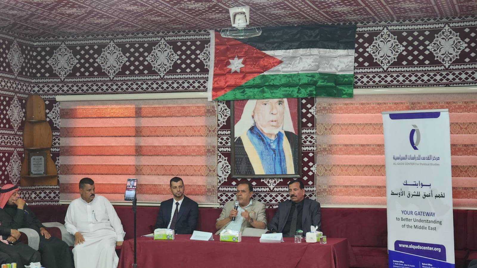 22 الاعلامي - بمشاركة أكثر من 70 مشاركاً ومشاركة من أهالي عشيرة أبو نجم ونشطاء ووجهاء الظليل نظم مركز القدس للدراسات السياسية وديوان آل أبو نجم ديوانيةً سياسيةً تحت عنوان: الأردن وفلسطين وحدة المسار والمصير، وتحدث فيها كل من النائب الدكتور أحمد الخلايلة عضو مجلس النواب، ومدير مركز القدس للدراسات السياسية الأستاذ عريب الرنتاوي.