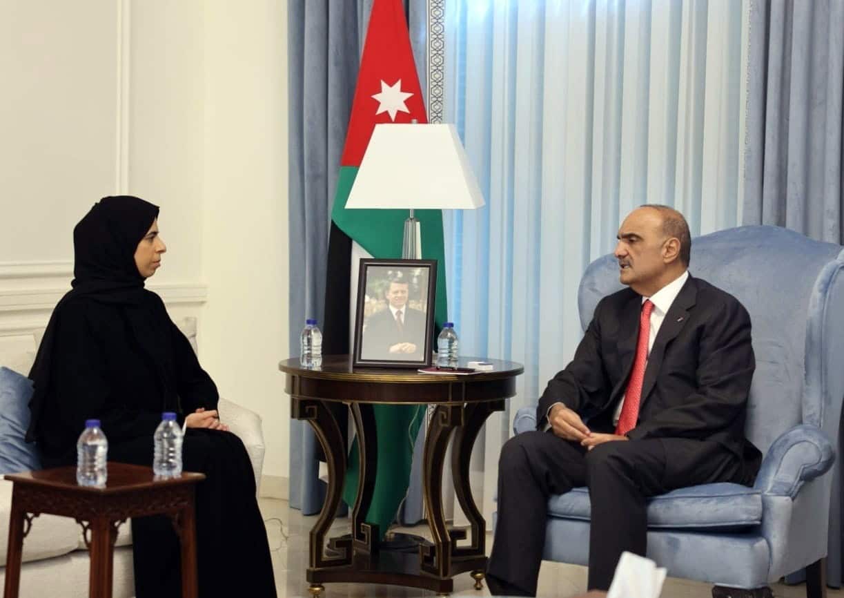 استقبل رئيس الوزراء الدكتور بشر الخصاونة، اليوم الثُّلاثاء، في مكتبه في دار رئاسة الوزراء وزيرة الدَّولة للتَّعاون الدَّولي في دولة قطر لولوة بنت راشد الخاطر.