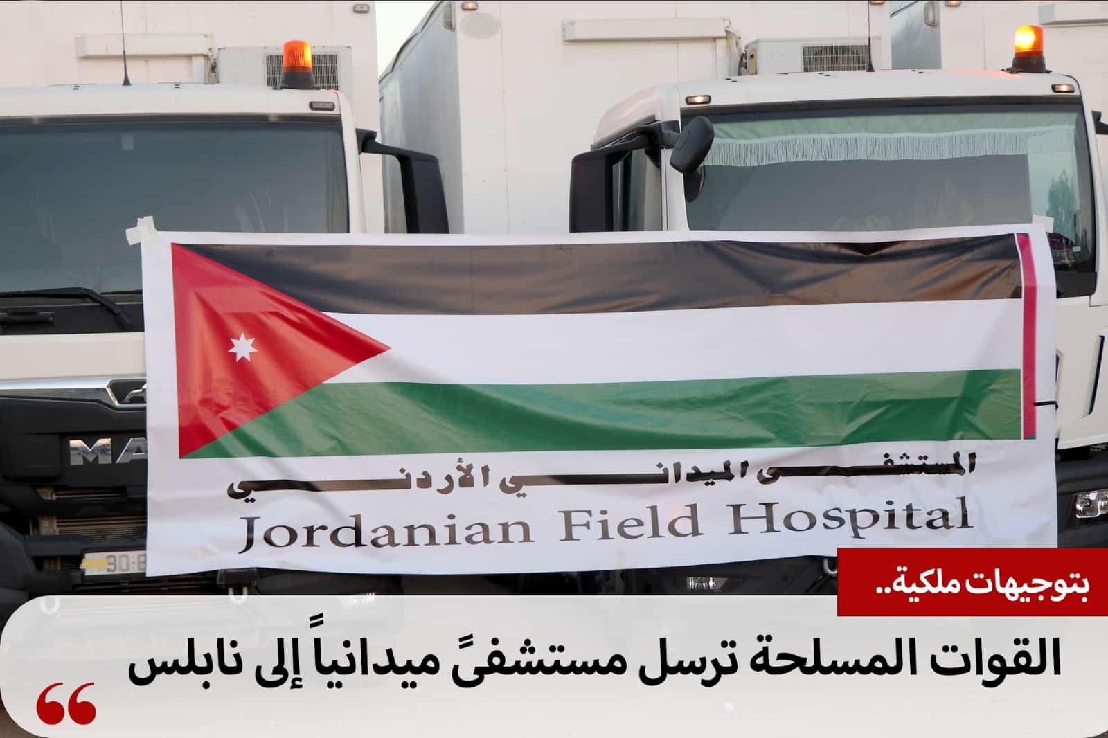 ويأتي إرسال المستشفى الميداني الذي يتكون من سبع قاطرات، تضم غرفتي عمليات، وغرفتين للعناية الحثيثة، وخمسة عشر سريراً؛ إضافةً إلى مختبر وصيدلية وأشعة وعيادة أسنان، وغرفة تعقيم، لمدينة نابلس نتيجة لتطورات أعمال العنف غير المسبوقة من حيث ازدياد العنف وارتفاع وتيرة الاحداث في غزة، واستمراراً لدعم الأردن المستمر لصمود أهلنا في فلسطين.