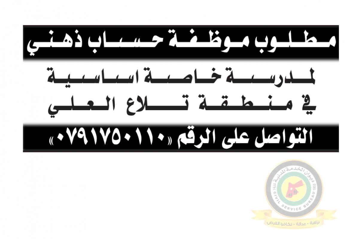 اعلان وظائف شاغرة موظفة حساب ذهني صادرعن مدرسة خاصة في منطقة تلاع العلي