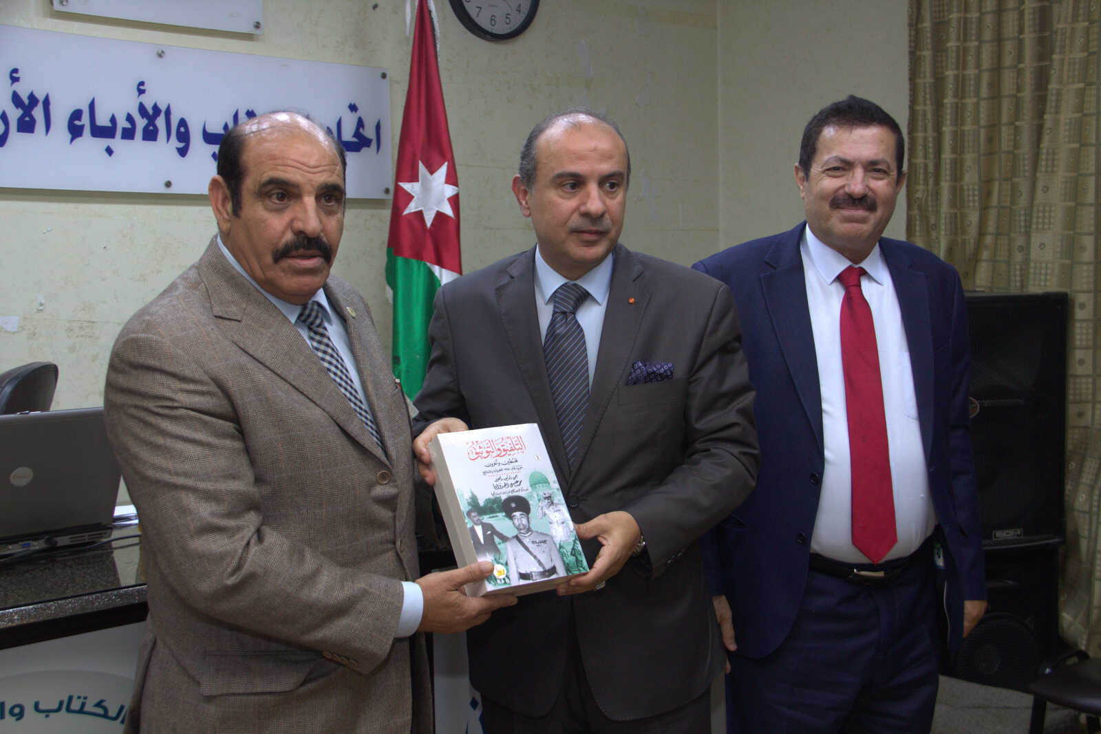 وسط حضور لافت من الكتاب والادباء والسياسيين والاعلاميين ورواد اتحاد الكتاب اقيمت في اتحاد الكتاب والادباء الاردنيين محاضرة مهمة ومتميزة لمناقشة كتاب الباحث والمؤرخ د. محمد عيسى العدوان مدير مركز عمان والخليج للدراسات الاستراتيجية المدير العام الاسبق لمركز التوثيق الملكي الأردني الهاشمي تحت عنوان – التلفيق والتوثيق – فلسطين وآخرون حرب عام 1948 بالتعاون مع دار يافا للنشر والتوزيع لطباعة وتوزيع الكتاب في الأردن ويعتبر كتاب التلفيق والتوثيق كتاب متخصص في مجال التوثيق المعرفي والتحليل المعلوماتي السياسي ، وهو نتاج سنوات طويلة من الجمع والبحث والتكشيف والاطلاع على مئات الوثائق في الارشيفات العالمية ، التي تم العمل عليها ليخرج هذا الكتاب بالشكل الذي يقدم صورة مختلفة في مجال التحليل والتوثيق والدراسات التاريخية السياسية ، وقد يكون هذا الكتاب الاول من نوعه في العالم الذي تم ارفاق مئات صور الوثائق الاصلية فيه .