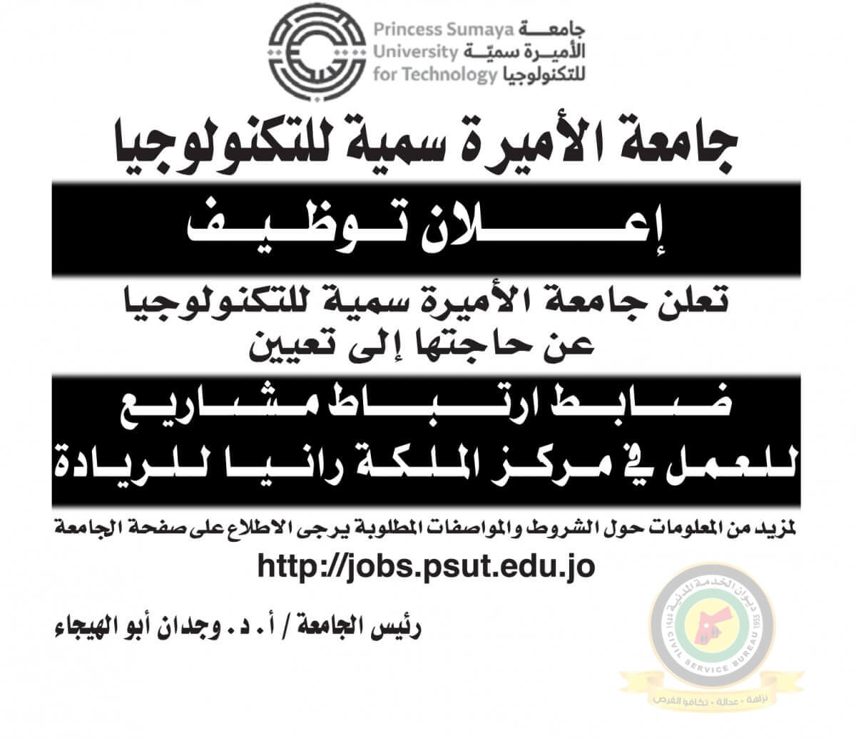 اعلان وظائف شاغرة ضابط ارتباط مشاريع صادرعن جامعة الأميرة سمية للتكنولوجيا