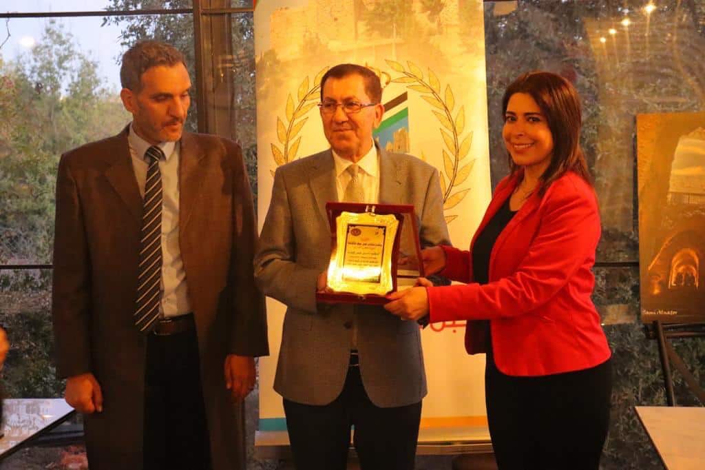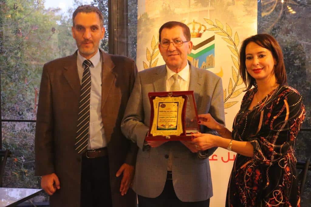 حسين غرايبة بتكريم الأستاذ الدكتور عدنان مقطش تقديراً لجهوده في دعم العمل الثقافي في عجلون ،والمسيرة الريادية لمنتدى جبل عوف .