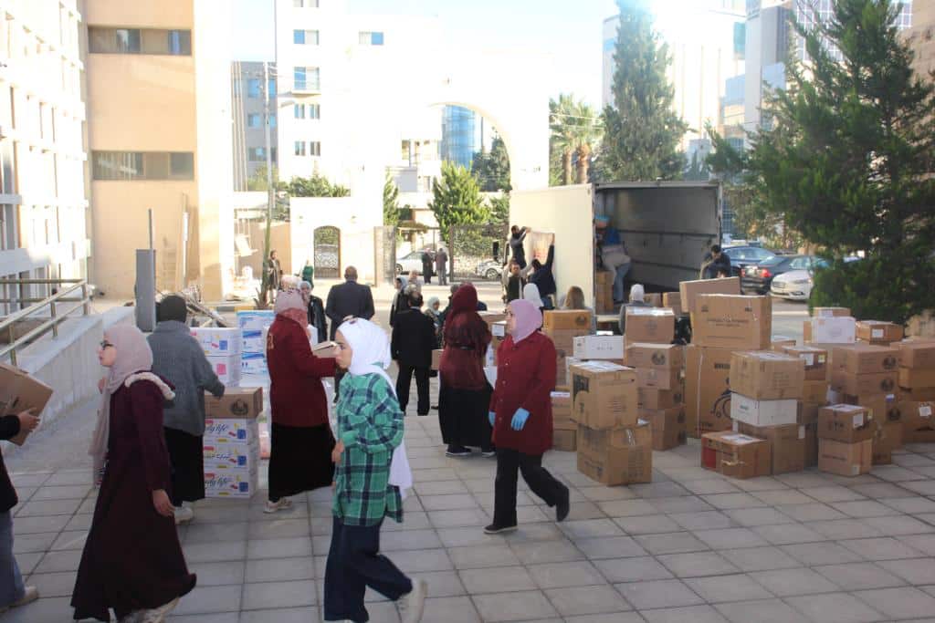 قامت جامعة البلقاء التطبيقية وبتوجيه ومتابعة مباشرة من رئيس الجامعة الأستاذ الدكتور أحمد فخري العجلوني ومن خلال وحدة التنمية وخدمة المجتمع المحلي وكلية الأميرة عالية الجامعية وبالتعاون مع الهيئة الخيرية الأردنية الهاشمية لتسيير حملة المساعدات والتي سبق وأن أعلن عنها واستمرت من ١١/٢١ - ٢٠٢٣/١٢/٦ حيث تضمنت الحملة على مجموعة كبيرة من الأدوية، والمواد التموينية والغذائية، والحرامات والألبسة المختلفة للأطفال وكبار السن.