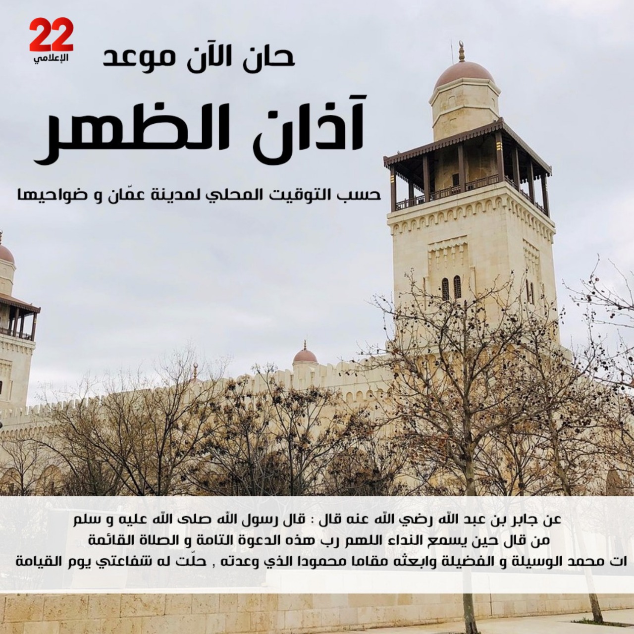حان الان موعد اذان الظهر حسب التوقيت المحلي للاردن