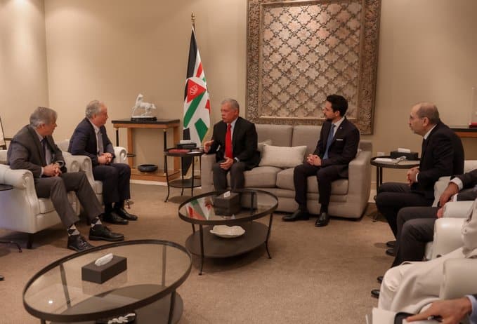 وحضر اللقاء نائب رئيس الوزراء ووزير الخارجية وشؤون المغتربين أيمن الصفدي، ومدير مكتب جلالة الملك، الدكتور جعفر حسان، والسفيرة الأميركية في عمان يائل لمبرت.