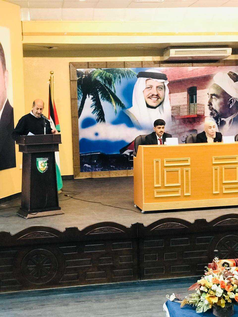 وفي كلمة الكلية، قال مساعد العميد لشؤون التطوير والتدريب والجودة، حسين عسّاف، أن الموقف الهاشمي اتجاه فلسطين فيه من عناصر القوة الكثير ومنها الفهم العميق لدى جلالة الملك لقوانين السلم والحرب موازين القوى والقوانين التي تحكم العلاقات الدولية وفي الفهم لطبيعة المواجهة الاي يجب أن تكون في مواجهة العقلية التي تحكم العدو الصهيوني.