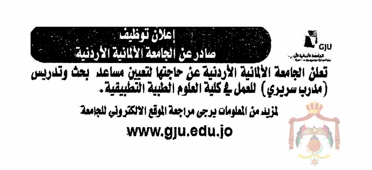 اعلان وظائف شاغرة صادرعن الجامعة الألمانية الأردنية