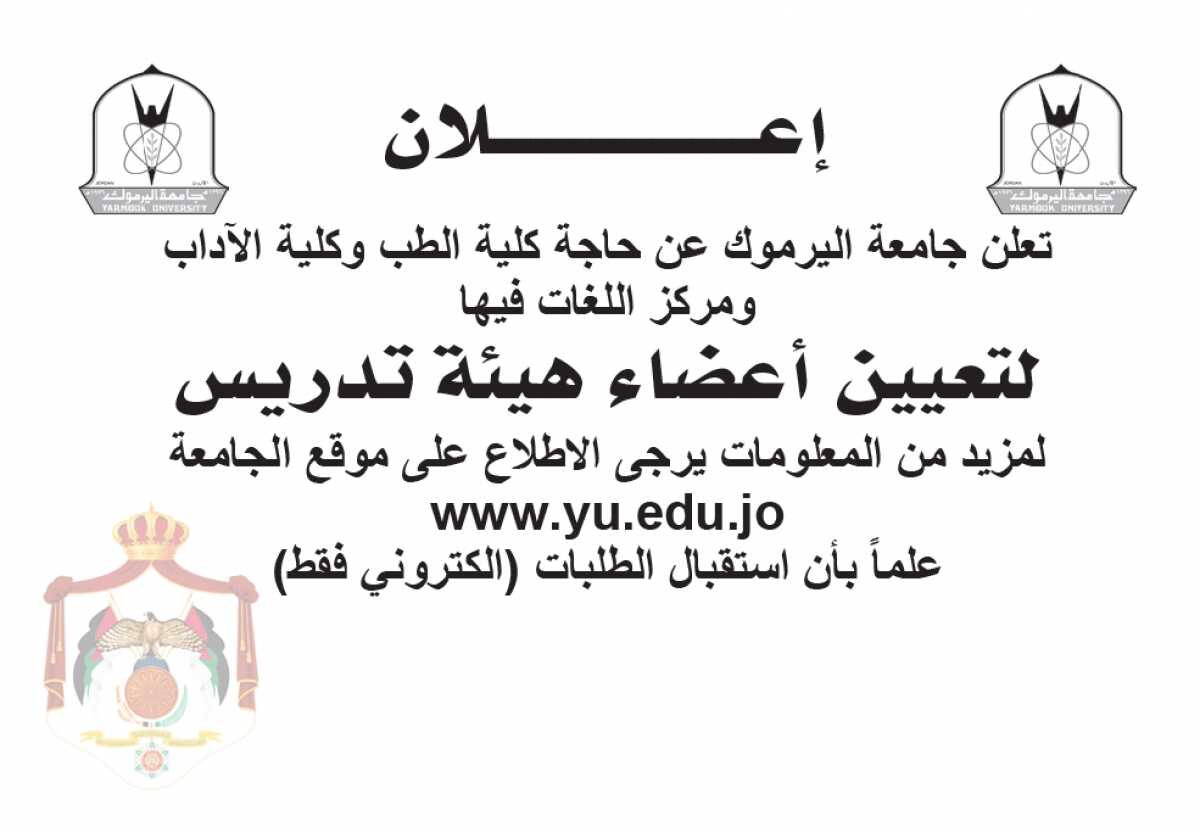 اعلان تعيين اعضاء هيئة تدريسية صادرعن جامعة اليرموك