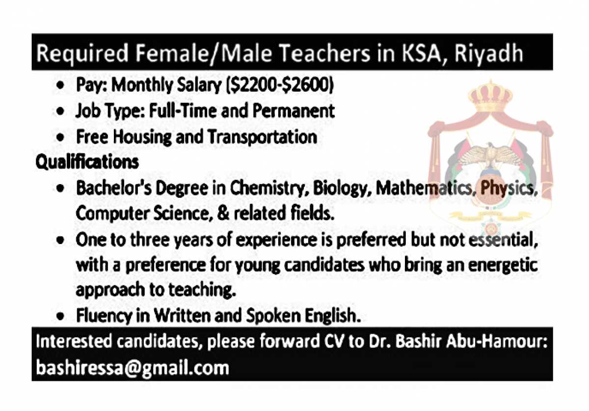 اعلان وظائف شاغرة معلمين ومعلمات للعمل في الرياض / المملكة العربية السعودية