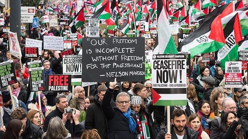 وبحسب وكالة الصحافة الفرنسية، رفع المشاركون في التظاهرات الأعلام الفلسطينية واللافتات المنددة بالجرائم التي يرتكبها الاحتلال الإسرائيلي بحق الشعب الفلسطيني، داعين إلى وقف المعايير المزدوجة وضرورة محاكمة الاحتلال على مجازره ضد الشعب الفلسطيني، خاصة الأطفال، ونددوا بالإبادة الجماعية في قطاع غزة.