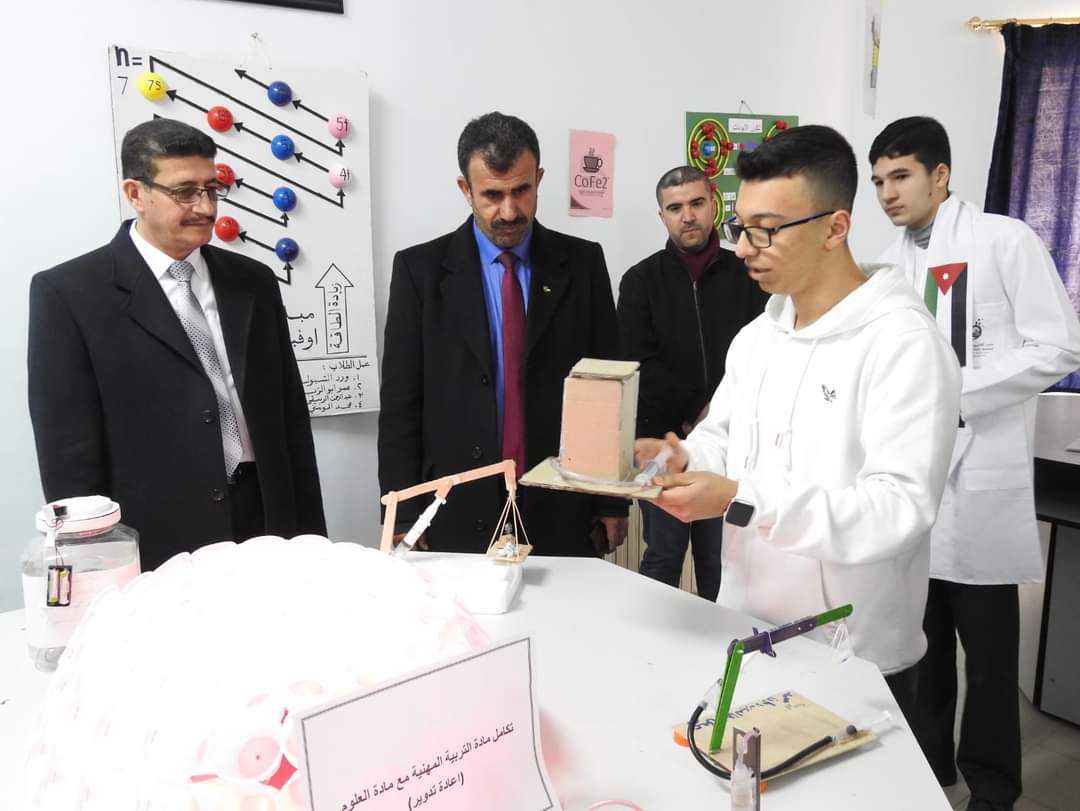 وتابع الدكتور الهواري زيارته في الجناح العلمي الذي تناول العديد من الزوايا مثل الزراعة المائية والتجارب الكيميائية والفيزيائية ومعرض الوسائل التعليمية حيث قدم الطلبة شرحا عنها وأجروا التجارب أمام الحضور وعرض بعض الطلبة (بدر الدين الزعبي وزيد رواشدة) اختراعاتهم لبعض الأجهزة من إعادة تدوير مخلفات المنزل ، وتم الاطلاع على زاوية اللغة الفرنسية والاستماع لقصيدة وطنيها باللغة الفرنسية قدمها الطالب هاشم لافي وترجمها الطالب عون هزايمة .