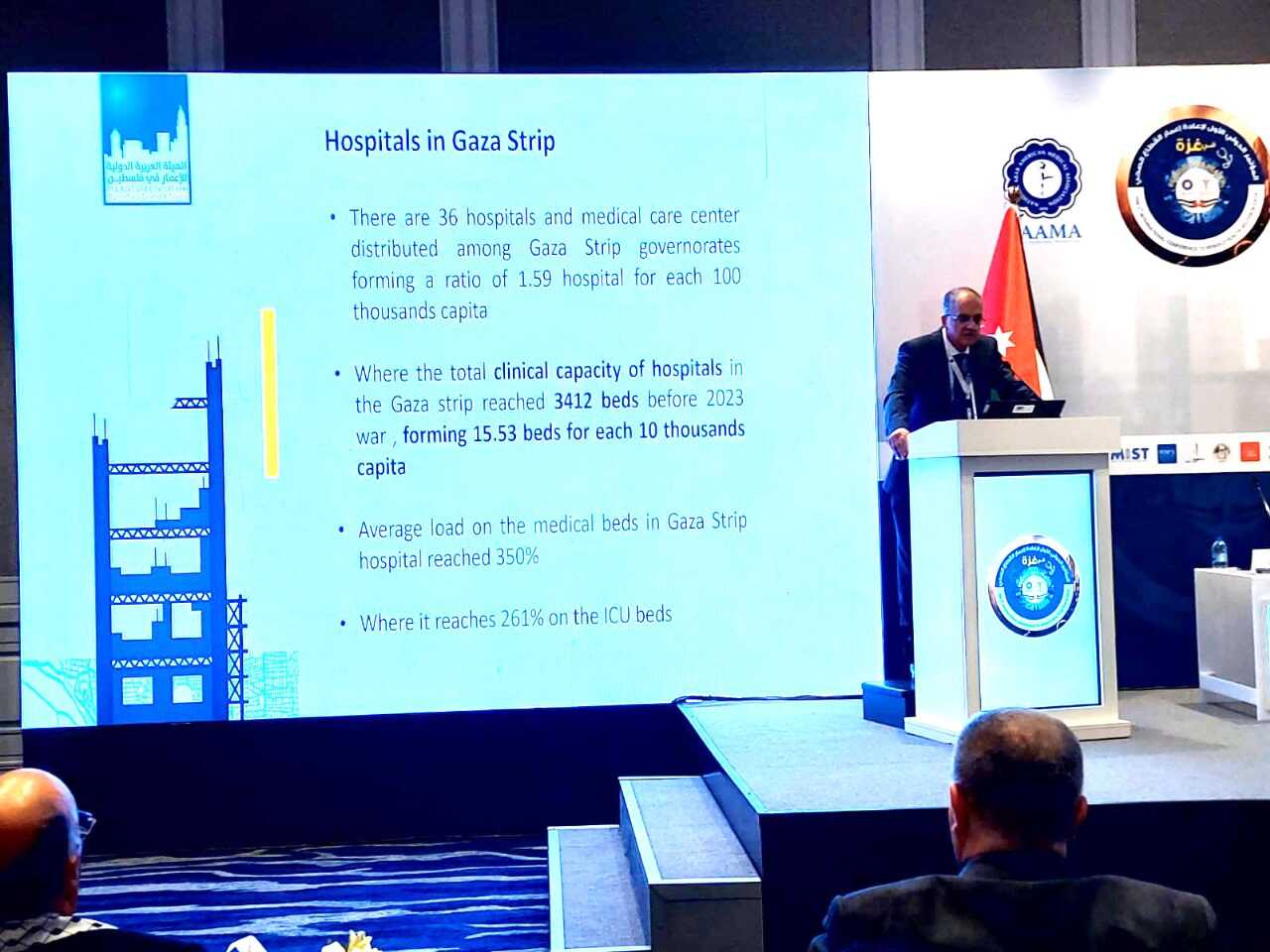 من جهته قدم المهندس فوزي مسعد نائب نقيب المهندسين الاردنيين ورقة خلال المؤتمر حول اليات عمل الهيئة العربية الدولية للإعمار في فلسطين والمشاريع التي أنجزتها والتي لا زالت تعمل عليها في جميع القطاعات ومنها القطاع الصحي وقدم شرحا عن حالة المنشآت الصحية وإعادة البناء في محور احتياجات ومتطلبات الرعاية الصحية في غزة ، وبين الخطط المستقبلية لاسناد اهلنا في القطاع والنتائج الأولية للدراسات التي نفذها مهندسون في قطاع غزة لتقييم الاضرار التي تعرضت لها أكثر من 14 مستشفى في غزة والكلف المالية اللازمة لإعادة تشغيلها..