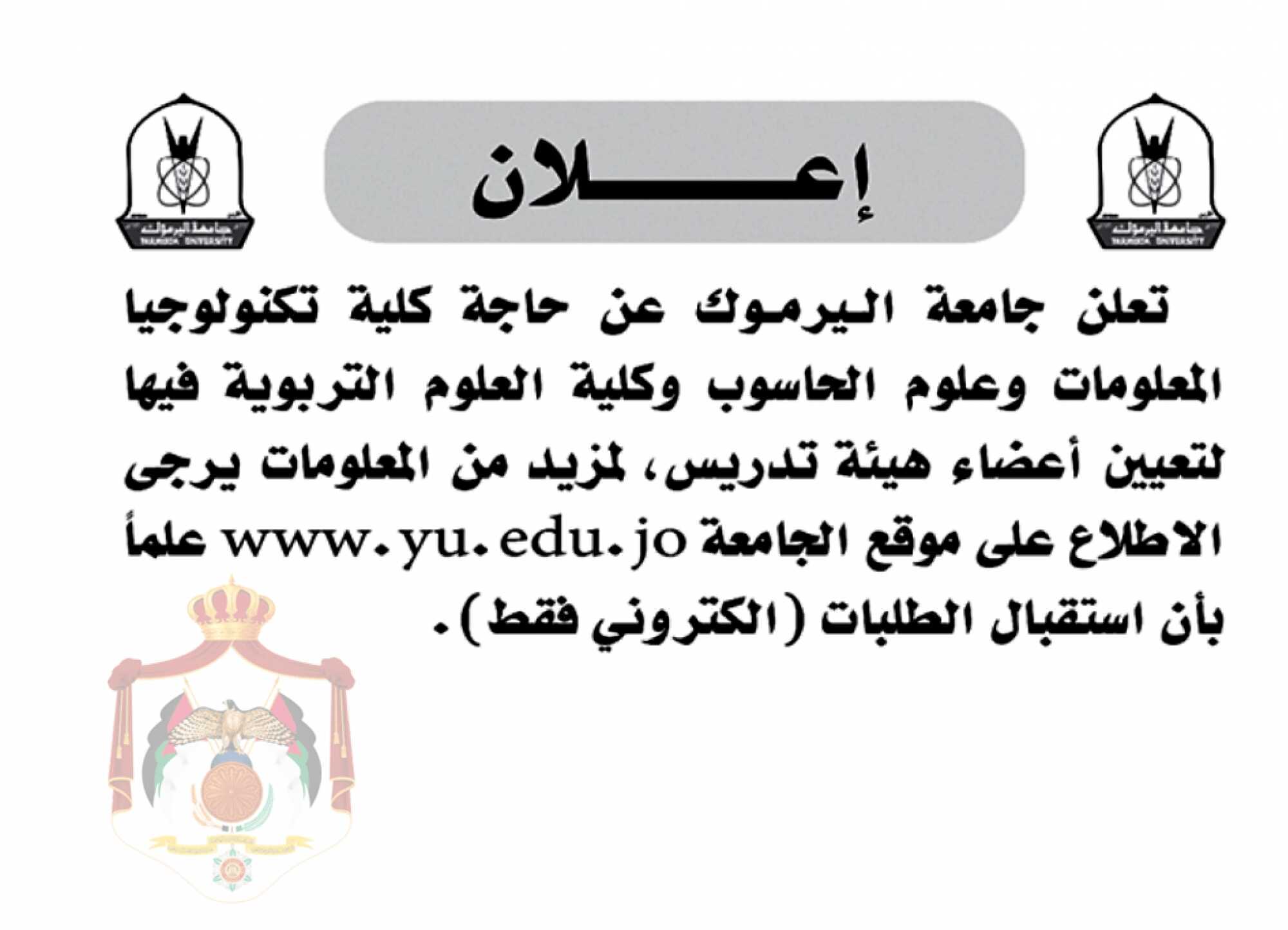 اعلان تعيين اعضاء هيئة تدريسية صادرعن جامعة اليرموك