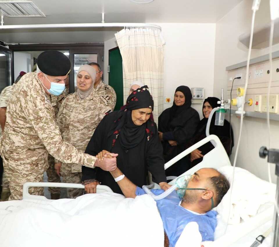 واطلع اللواء الركن الحنيطي على الوضع الصحي للمصاب، موجهاً مدير عام الخدمات الطبية بضرورة تقديم كافة أشكال الرعاية الصحية والعلاجية للمصاب، ومتمنياً له الشفاء العاجل.