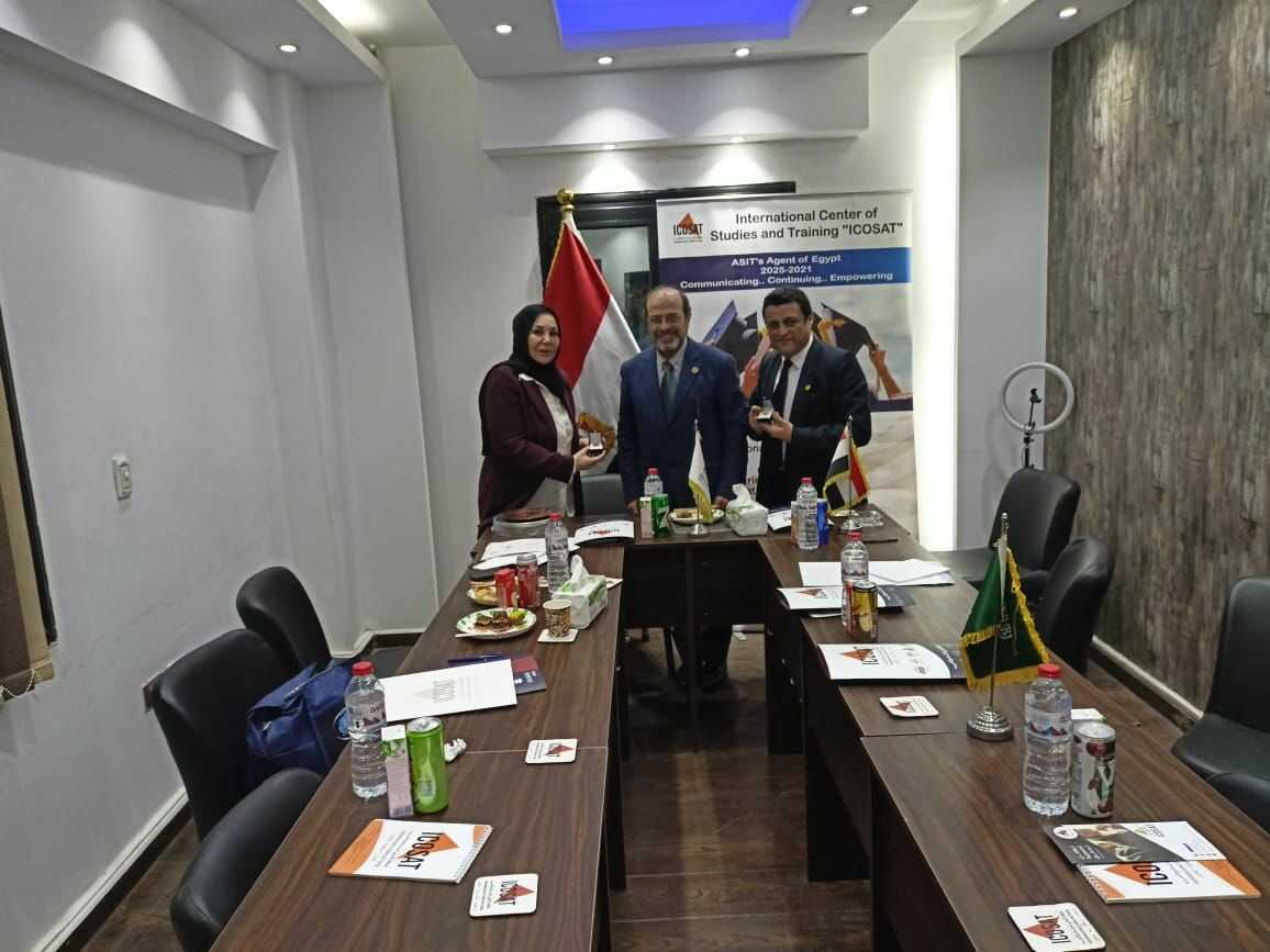 22 الاعلامي - استقبل الدكتور وائل زكي رئيس مجلس إدارة مركز ايكوسات للتدريب في مكتبه بالقاهرة الاحد الموافق ١٨/٢/٢٠٠٢٤ الدكتورة ميسون تليلان السليّم رئيس مجلس ادارة ادوات الاحتراف للتدريب وبناء القدرات وتم بحث نقاط الالتقاء بين الطرفين حول الدوراتالتدريبية بحضور الدكتور حازم عوض مسؤول التدريب في المركز والمهندس محمد مسؤول ال ITفي المركز