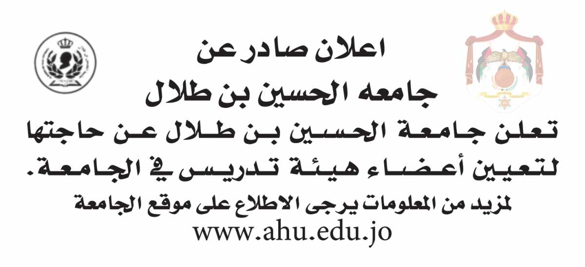 اعلان تعيين اعضاء هيئة تدريسية صادرعن جامعة الحسين بن طلال