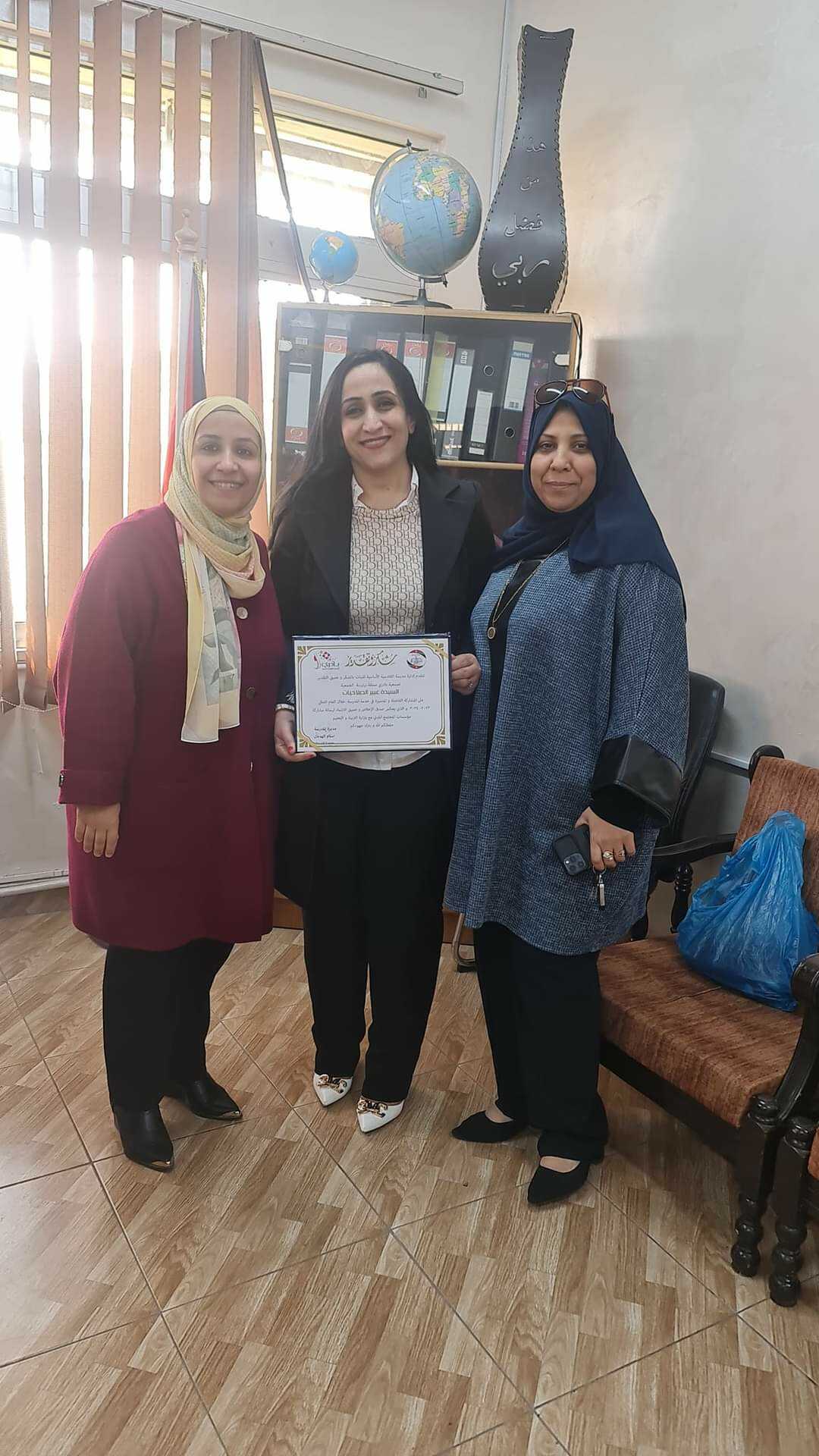 22 الاعلامي - كرمت مديرة المدرسة القادسية الاساسية الاولى للبنات إسلام الهدبان اليوم المستشارة عبير الصلاحات رئيسة جمعية بادري لدعمها وجهودها المستمرة للمدرسة .