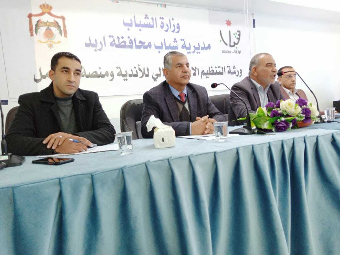 22 الاعلامي - نظمت مديرية شباب محافظة إربد ورشة بعنوان" التنظيم الإداري للأندية ومنصة تكامل " في بيت شباب إربد بمشاركة أمناء سر الأندية في محافظة إربد بحضور مدير الشباب يحيى المومني ومدير الأندية والهيئات الشبابية خالد مصطفى ورئيس قسم الحوكمة أكرم دهيم.