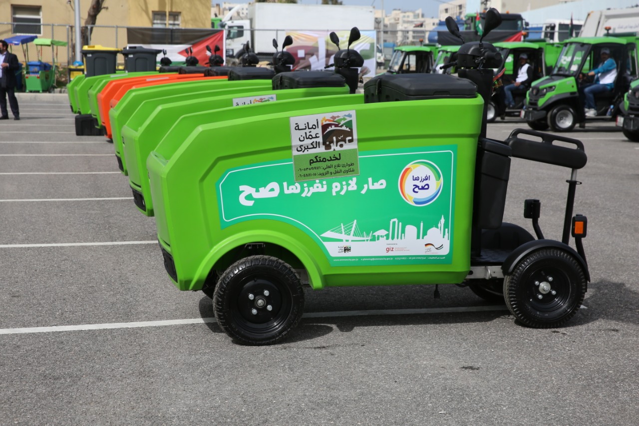 كما تسلمت امانة عمان بحضور الشواربة ، اليوم الثلاثاء ، آليات كهربائية مخصصة لمشروع فرز النفايات سيتم استخدامها في منطقتي المدينة وبسمان ، وعددها 14 مركبة كهربائية ، و8 عربات كهربائية .