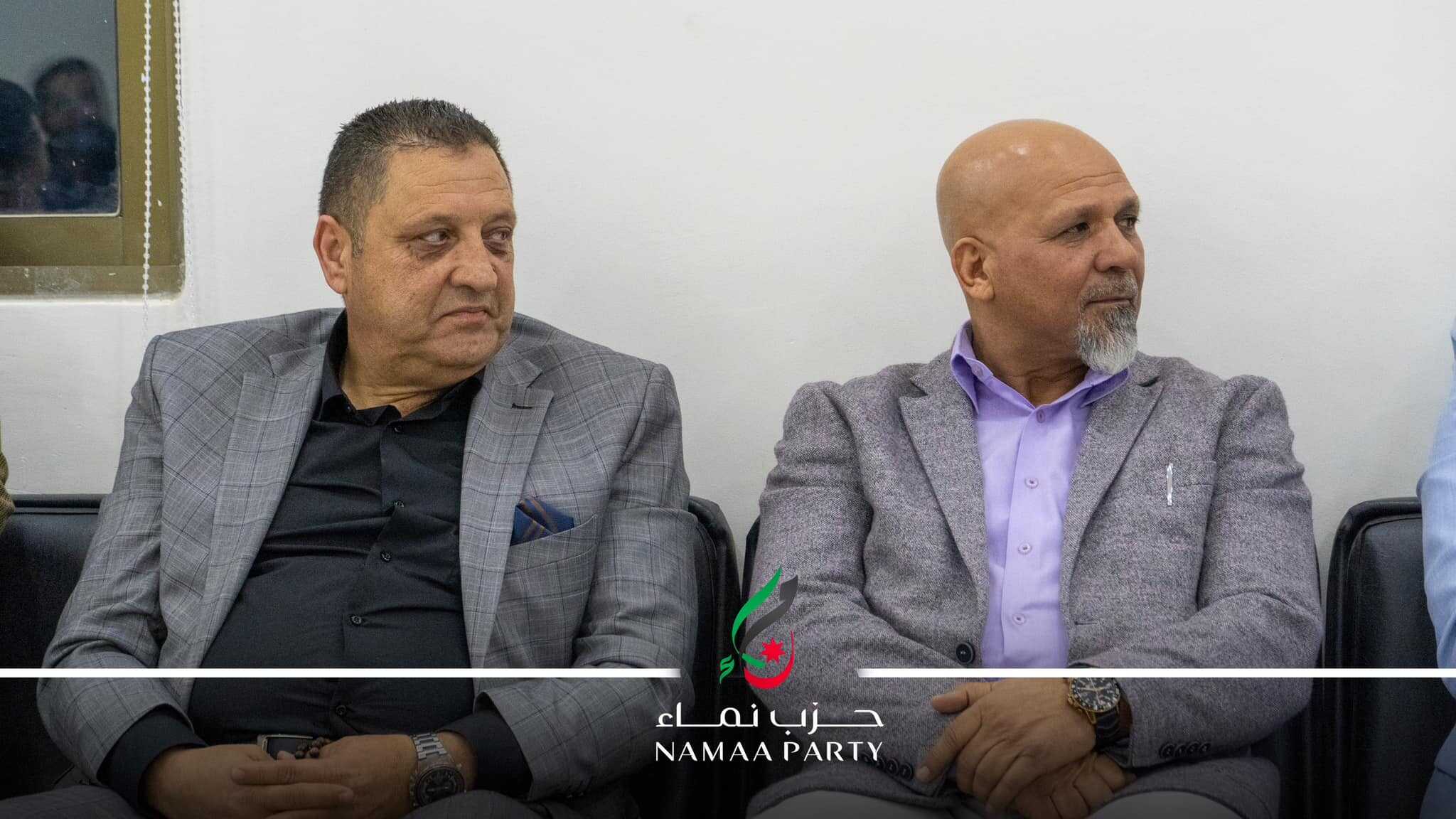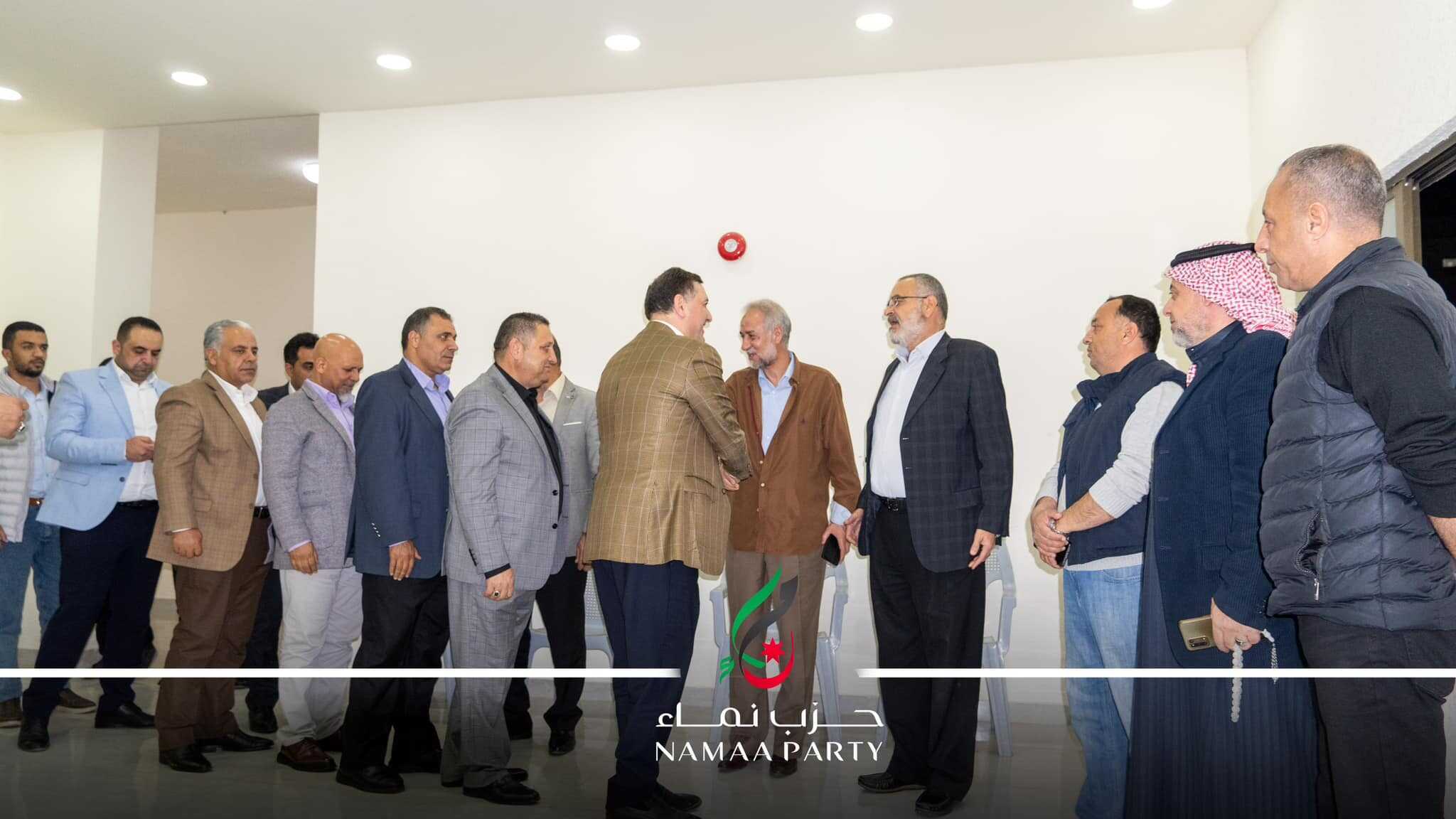 22 الاعلامي - التقى امين عام حزب نماء الدكتور محمد الرواشدة مع نخبة من اهالي محافظة العقبة بحضور عضو المجلس الأقتصادي رجل الأعمال السيد خليل الحسنات والسيد فايز بني عواد مساعد رئيس المجلس المركزي ومستشار الأمين العام لشؤون العمليات والمتابعة مؤيد المقابلة ورئيس فرع العقبة السيد رشاد أل خطاب ورئيس فرع البلقاء السيد خالد سليم الحياري ورئيس فرع معان الدكتور محمد الشراري ونائب رئيس فرع العقبة الدكتور محمد المصاروة