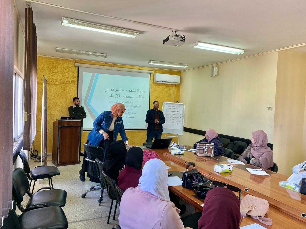 هذا ونفذ فريق ميسري الطفيلة الذي ضم كلا من ( يونس الرواشدة ، اية الفراهيد ، مرام المصري ،سمر السوالقة ، سائدة العودات و عبدالله العوران و ايهم الرواشدة ) عدد من الجلسات بالتعاون مع مركز شابات الطفيلة ومركز ارويم للتنمية البشرية و قاعة مجلس محافظة اللامركزية –العيص و مدرسة عين البيضاء الثانوية للبنات بعد حصولهم على مجموعة من التدريبات خلال الفترة السابقة تنوعت فيها الموضوعات بين المواطنة و المشاركة الفاعلة و تدريب حول قانون الانتخاب و اهمية منظومة التحديث السياسي من حيث المخرجات و الية تطوير القوانين الناظمة للحياة العامة .